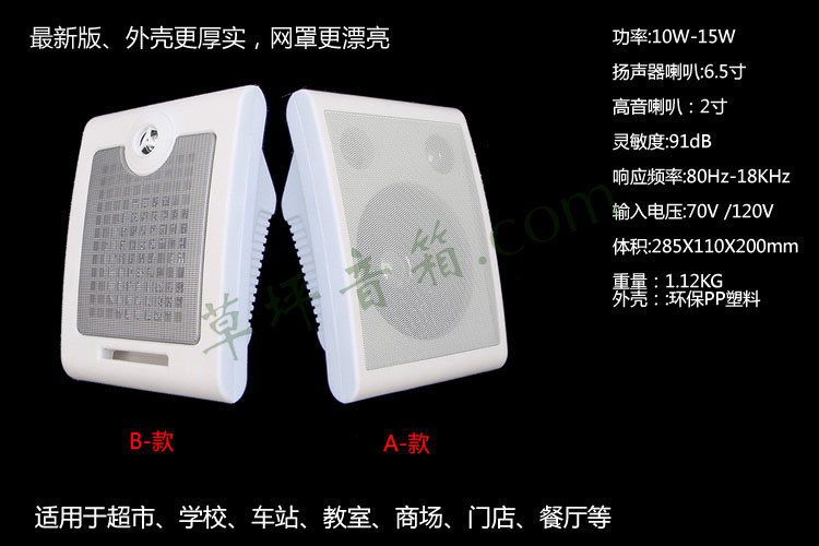 定压壁挂音箱音响喇叭无源挂壁音响超市会议教室校园广播音响10W