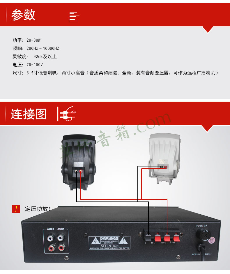 高保真20W壁挂音箱壁挂音响喇叭商场店铺教室音箱