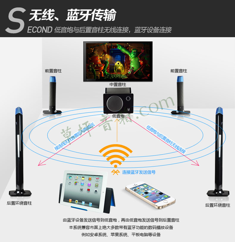 家庭影院 2.1音柱式电视音响 家庭k歌音箱低音炮套装