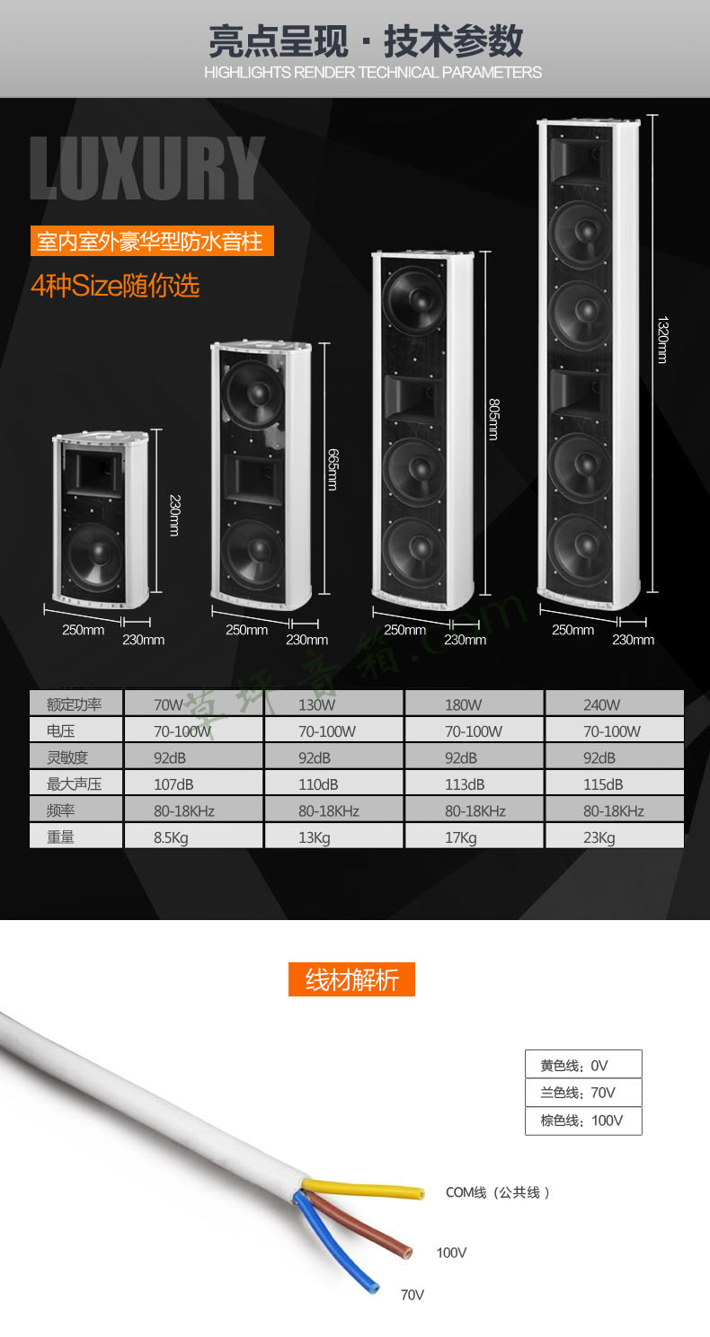 大功率定压防水音柱音响壁挂广场学校店铺公共广播音箱
