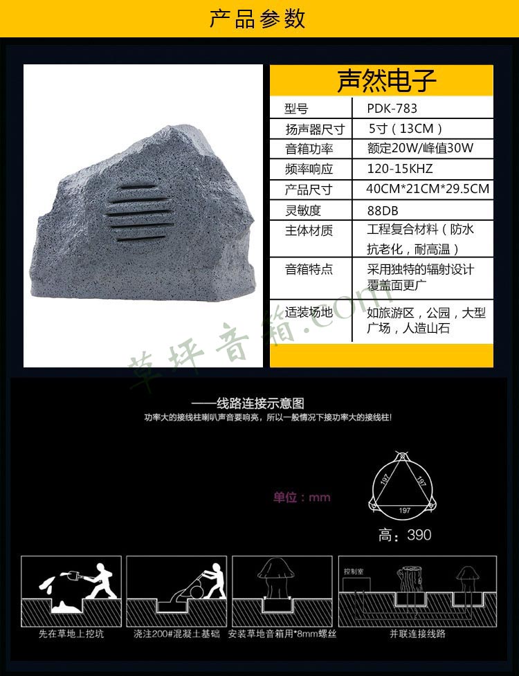室外公园广场小区草坪音响广播背景防水定压喇叭草坪音箱音响麻石