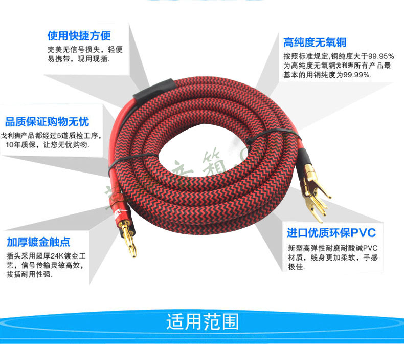 GOLLE YLION/戈利狮 LB03香蕉插头音箱线喇叭线.Y型头音响连接线