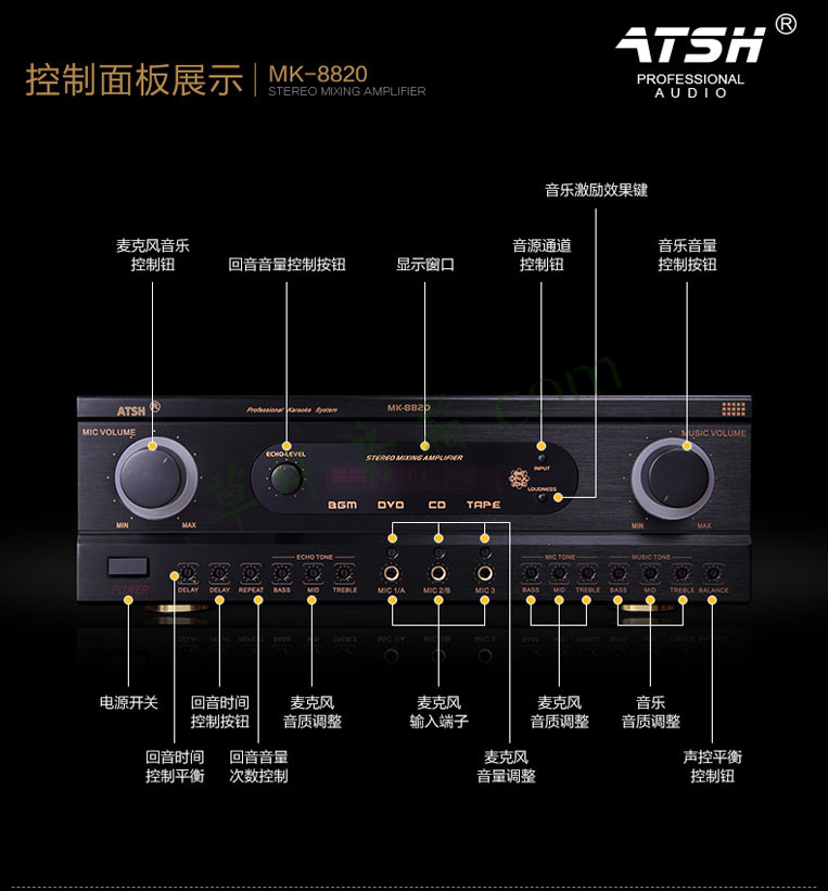 ATSH/爱特声 OK-1家庭会议室卡拉ok卡包音箱功放 专业ktv音响套装