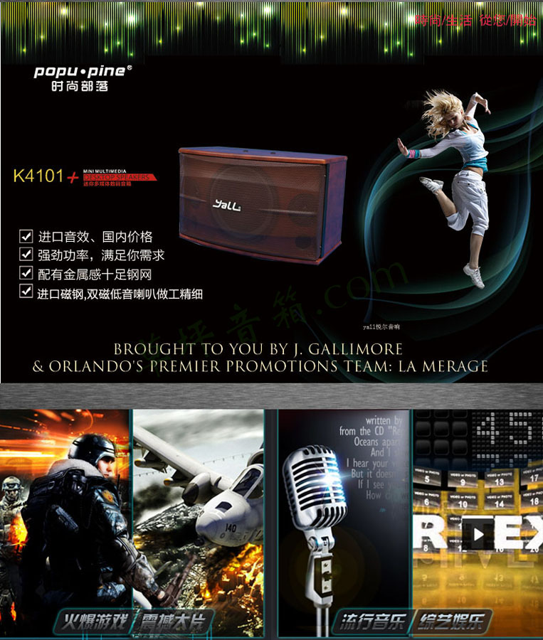 yall K-4101家庭KTV音响套装 专业卡拉OK音箱会议卡包功放音响