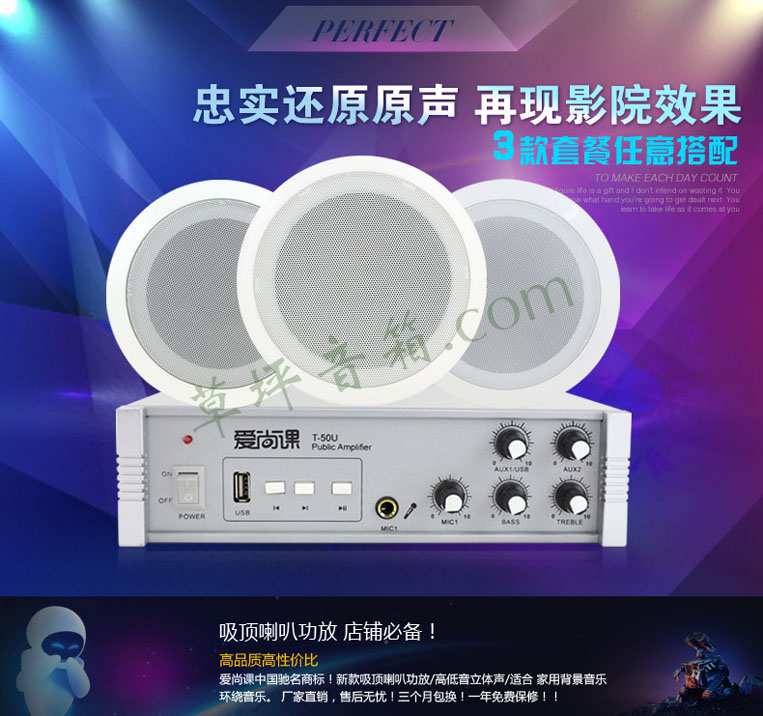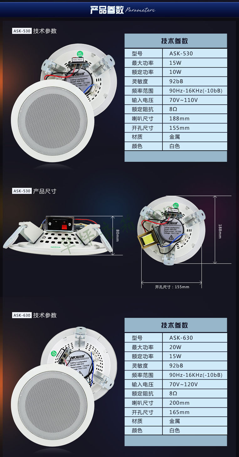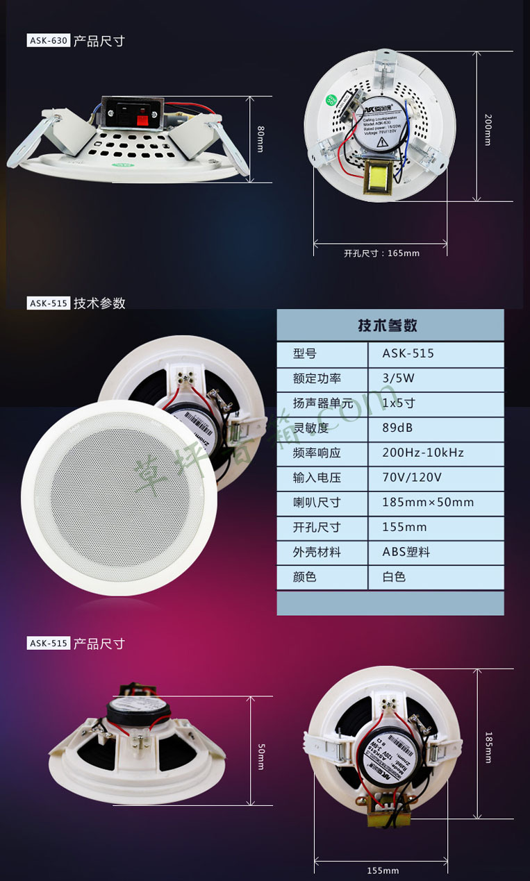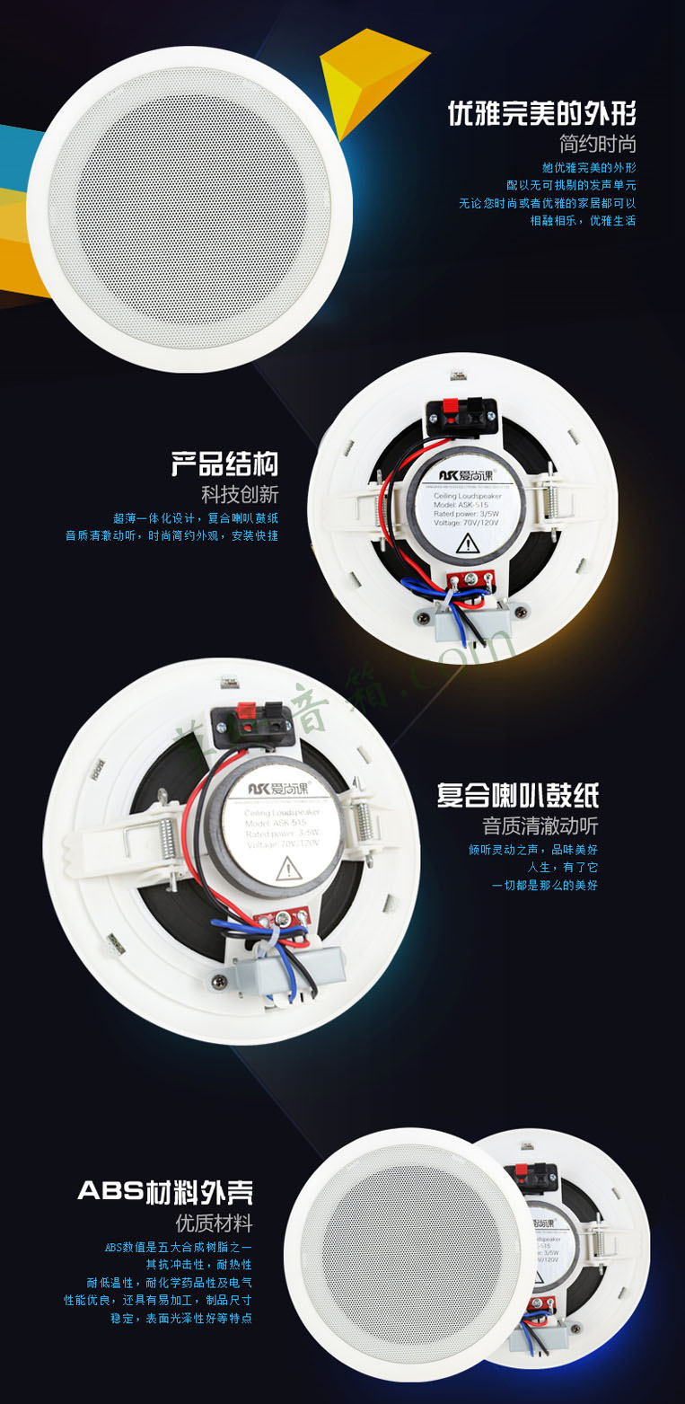 爱尚课 ASK-515 两只套餐 天花吸顶喇叭音箱套装公共广播定压功放