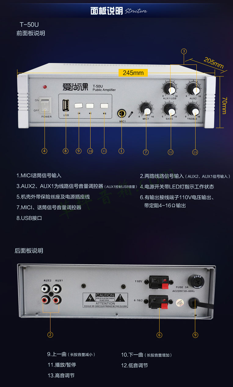 HYUNDAI/现代 T1 家庭KTV音响套装 卡拉OK舞台功放 会议音箱套装