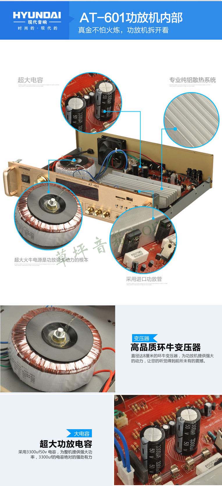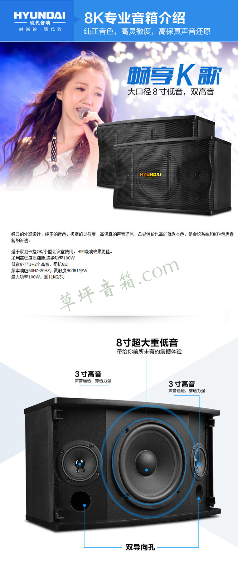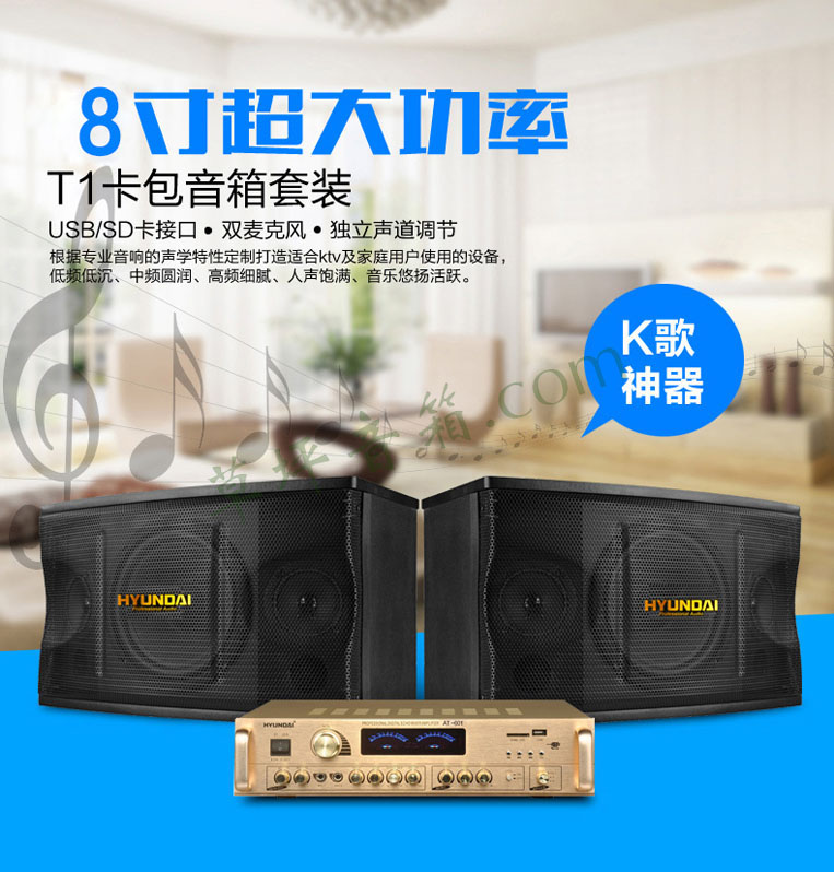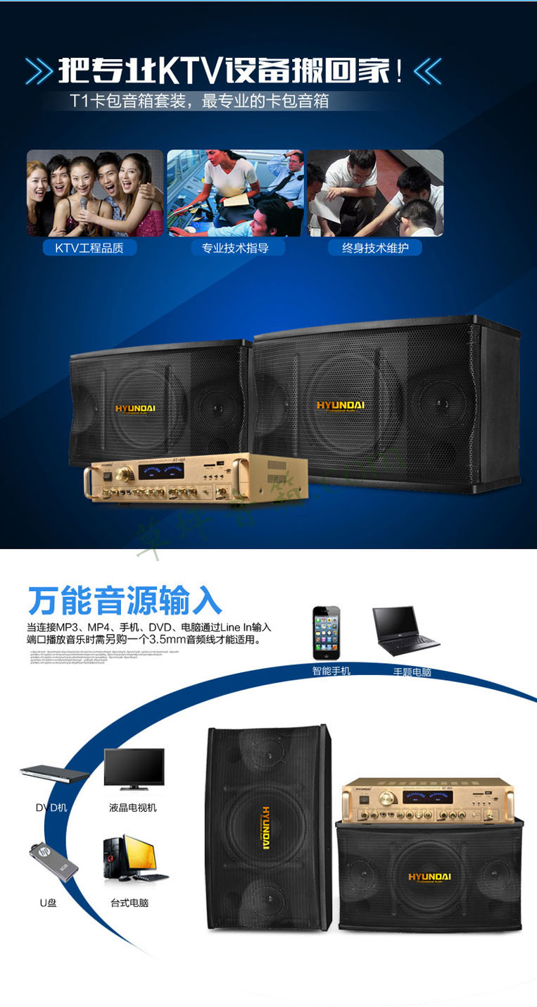 HYUNDAI/现代 T1 家庭KTV音响套装 卡拉OK舞台功放 会议音箱套装