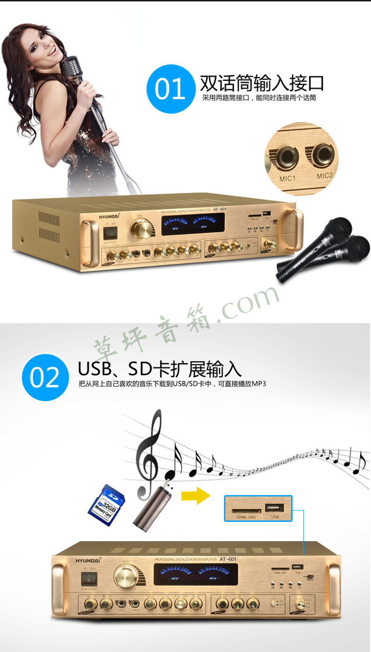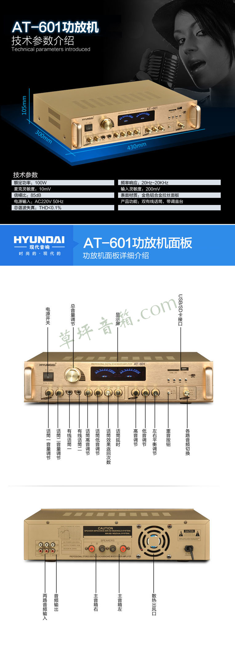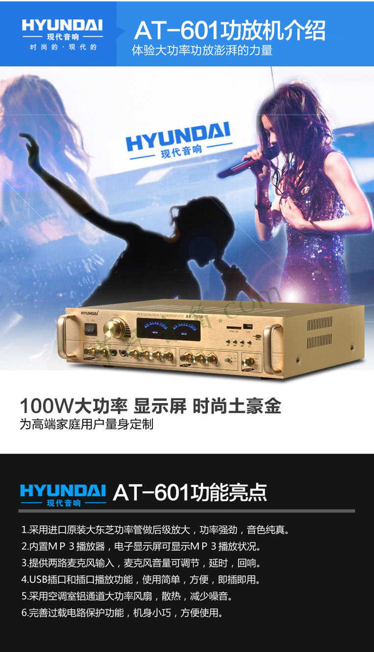 HYUNDAI/现代 T1 家庭KTV音响套装 卡拉OK舞台功放 会议音箱套装