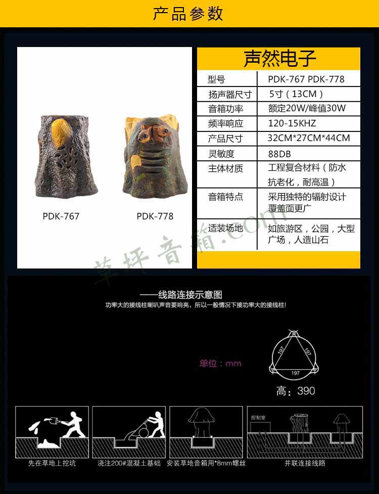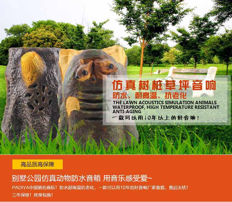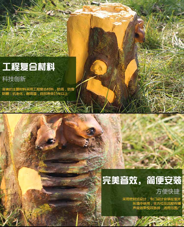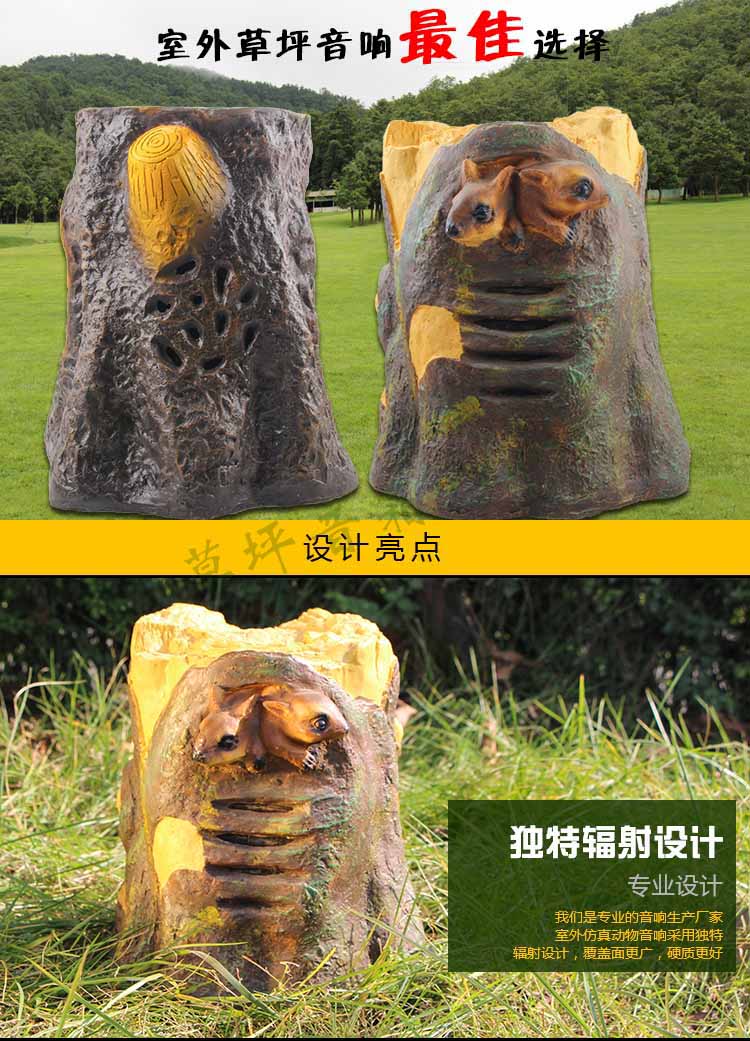 户外公园防水草坪音响音箱景观背景音箱园林小区石头音响松鼠树桩