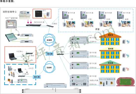 2) 、广播系统利用数字网络技术,能接入学校的局域网,系统具有有网络化、智能化,便于扩展,节省安装成本;